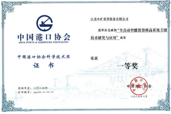 熱烈祝賀我公司“移動式堆料裝船一體機”榮獲中國港口協(xié)會科技進步獎一等獎