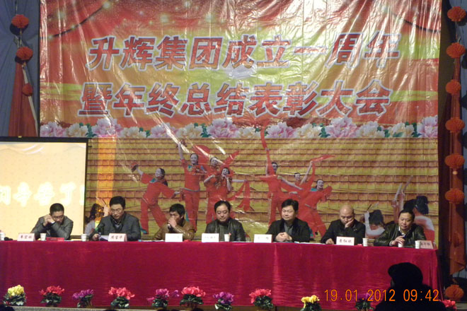 2012年1月19日,升輝集團慶祝成立一周年職工表彰大會在白甸鎮人民大會堂隆重召開。總結2011年的工作,表彰2011年度各項工作中涌現出的先進集體和個人,部署2012年的工作任務。