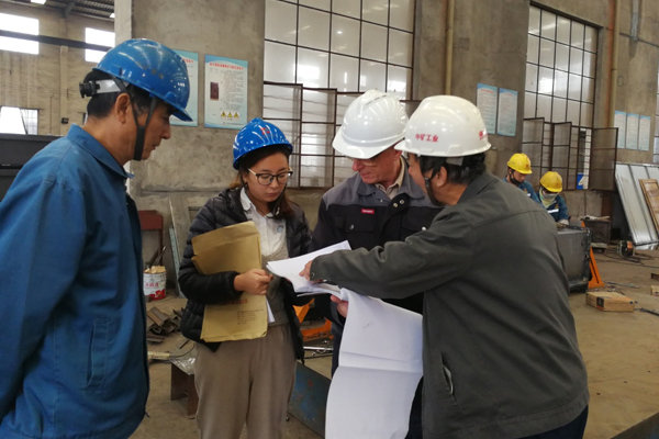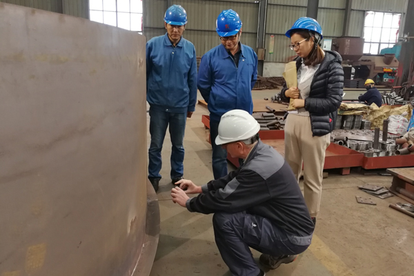 Jan Magleby Petersen與齊躍重點關(guān)注我司生產(chǎn)車間制作現(xiàn)場的圖紙和工藝文件是否符合合同要求,對部分設(shè)備的尺寸控制、焊縫、平整度、表面防銹處理、漆膜厚度等項目進(jìn)行抽樣檢測,檢測之后Jan Magleby Petersen與齊躍對我公司產(chǎn)品質(zhì)量表示肯定,肯定了我公司在質(zhì)量控制和細(xì)節(jié)處理方面的嚴(yán)苛要求。
